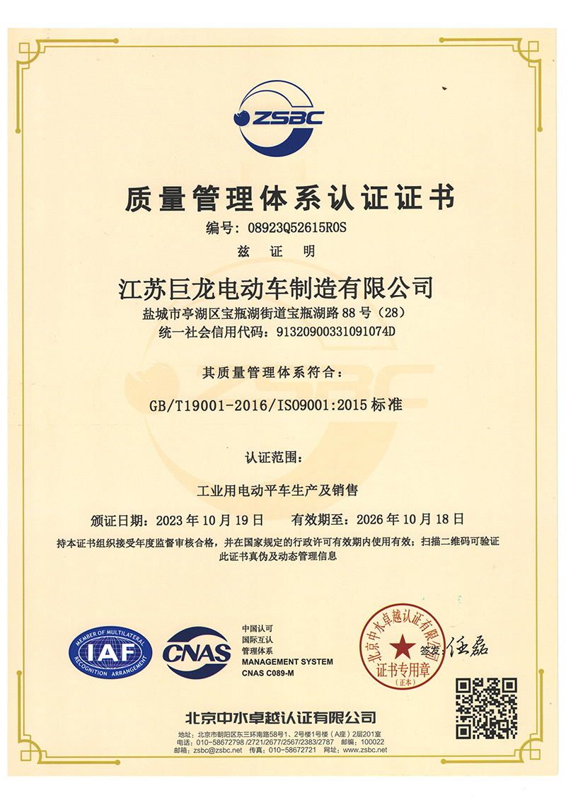 江蘇巨龍電動車制造有限公司是國內(nèi)具有20年集研發(fā)、生產(chǎn)、銷售、售后于一體的專業(yè)電動車輛設(shè)備公司。位于江蘇省鹽城市高新區(qū)(原市開發(fā)區(qū)),占地20000平方米,建筑面積約1 2000平方米,緊鄰寧靖鹽高速、204國道、南洋飛機場,交通便捷。公司現(xiàn)有員工95余人,專業(yè)技術(shù)人員35余人,工程技術(shù)人員10人。擁有良好的制造、檢測、實驗設(shè)備和完善的技術(shù)服務體系,為全國大、中型工礦企業(yè)、鋼廠、機械冶金、電廠、車站、港口、機場、市政環(huán)保部門、城管、公安、旅游景點、小區(qū)物業(yè)等行業(yè)提供雄厚的技術(shù)力量,是國內(nèi)生產(chǎn)電動搬運車的專業(yè)生產(chǎn)廠家。標志著江蘇巨龍邁向發(fā)展的新臺階,必將促進巨龍公司更加快速、長足的發(fā)展。